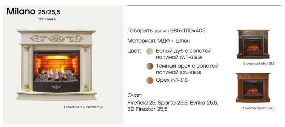 Электрокамин Real Flame Milano 25/25,5 DN-819G с очагом Firefield 25 S IR (орех / черный) интересное:
