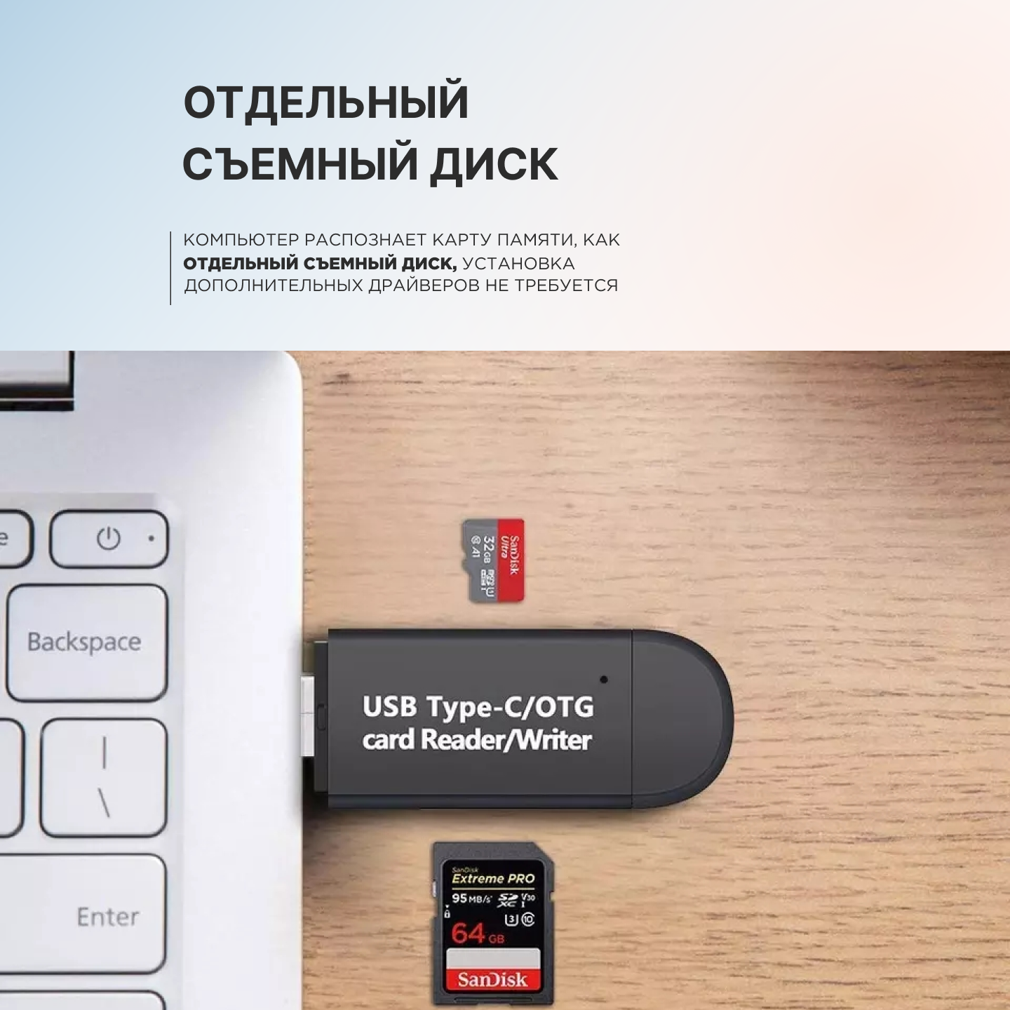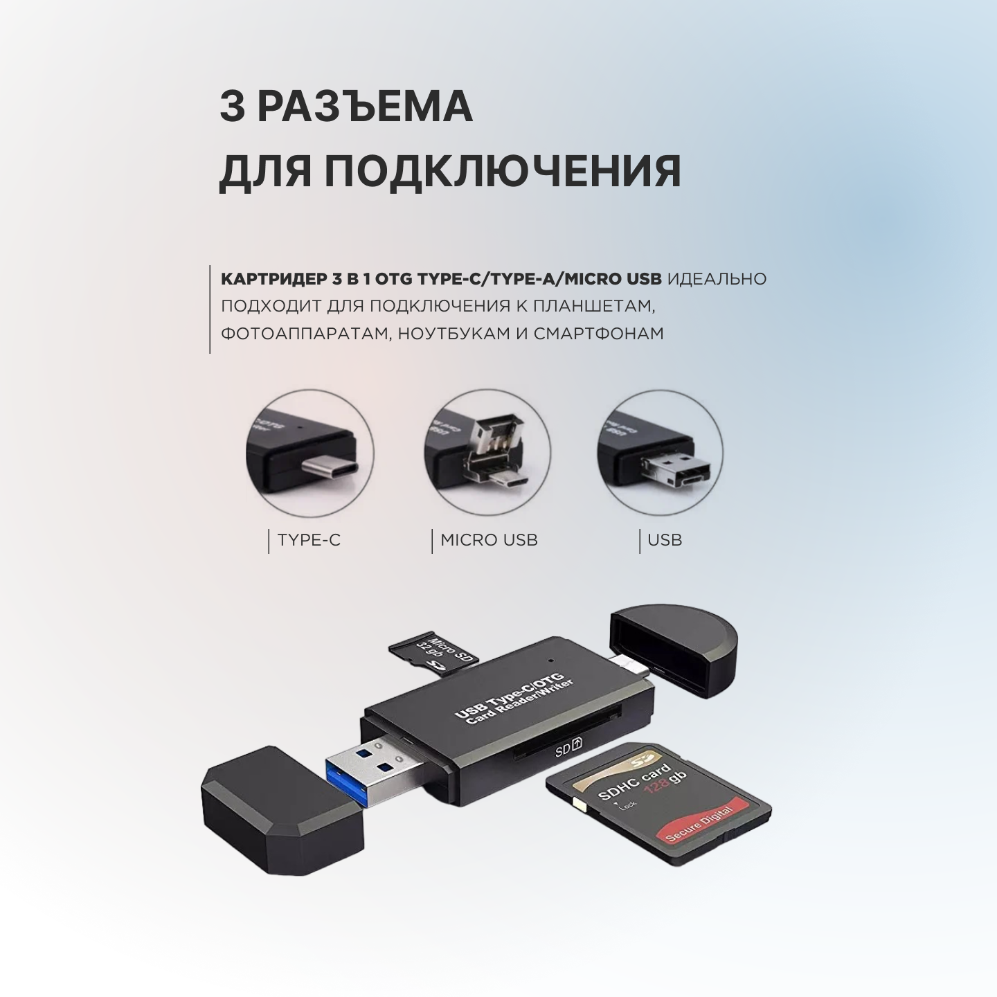 Картридер 3в1 Type-C/Micro USB/USB 2,0, поддерживает microSD/MMC/SD/SDXC интересное:
