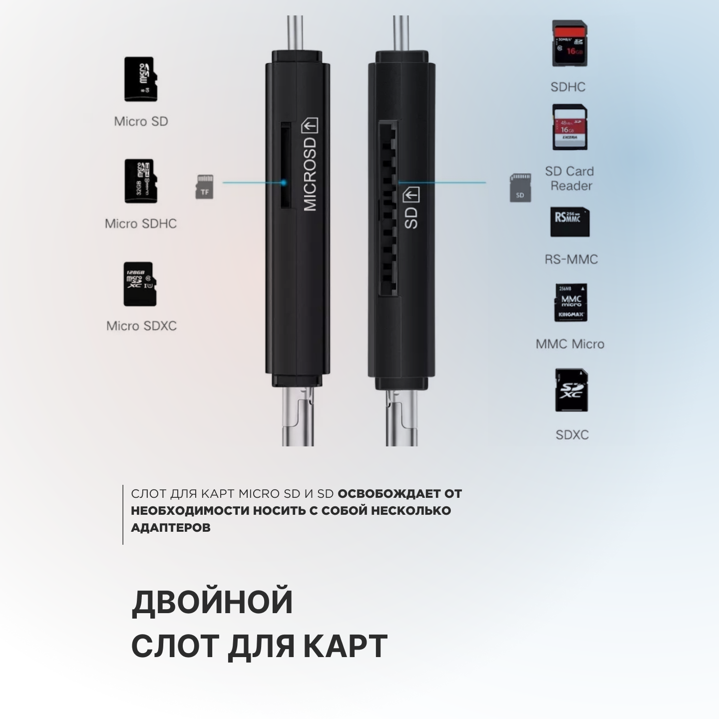 | Поддерживаемые форматы | MMC, SD, SDXC, microSD |
