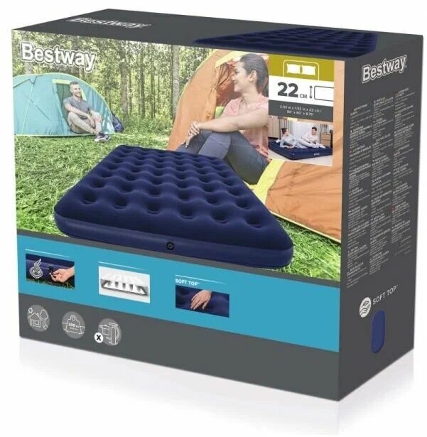 Матрас надувной 152х203х22 см, до 215кг Queen Bestway 67003 / двуспальный для сна и туризма / Flocked Air Bed