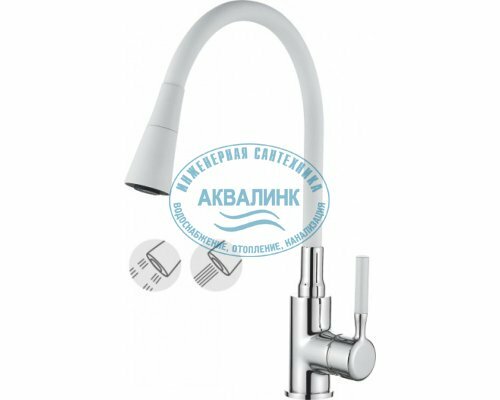 Смеситель для кухни с гибким изливом с душем Ledeme Rainbow R L4199-3 белый/хром