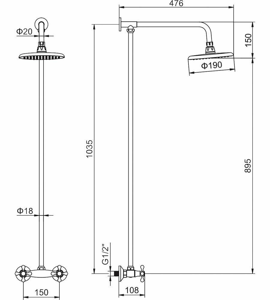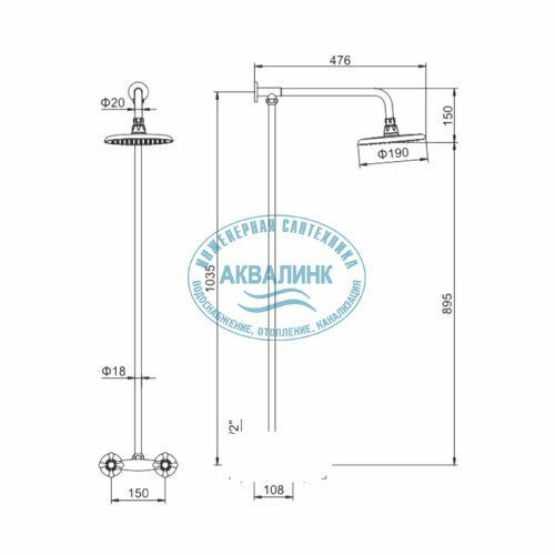 | Дополнительная информация | высота стойки для душа: 1000 мм; диаметр верхнего душа: 150 мм |