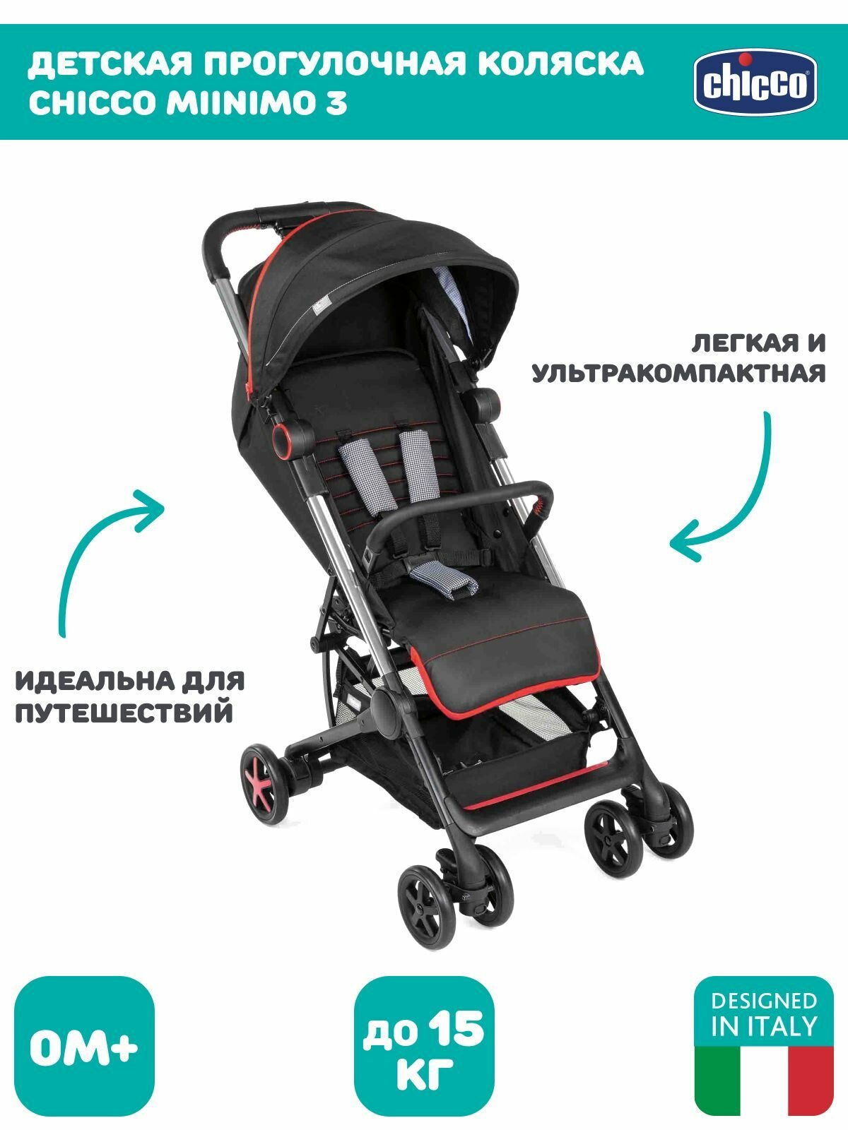 Купить Коляска детская прогулочная Чико Chicco Miinimo 3 0+, легкая, компактная, для путешествий, большой капюшон