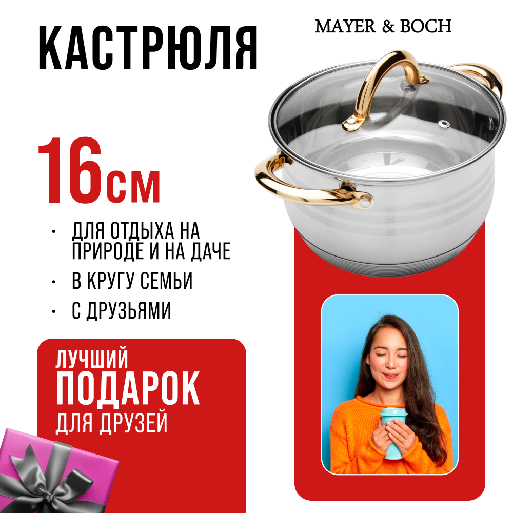 Кастрюля с крышкой индукция Mayer&Boch, стальная, 2л интересное: