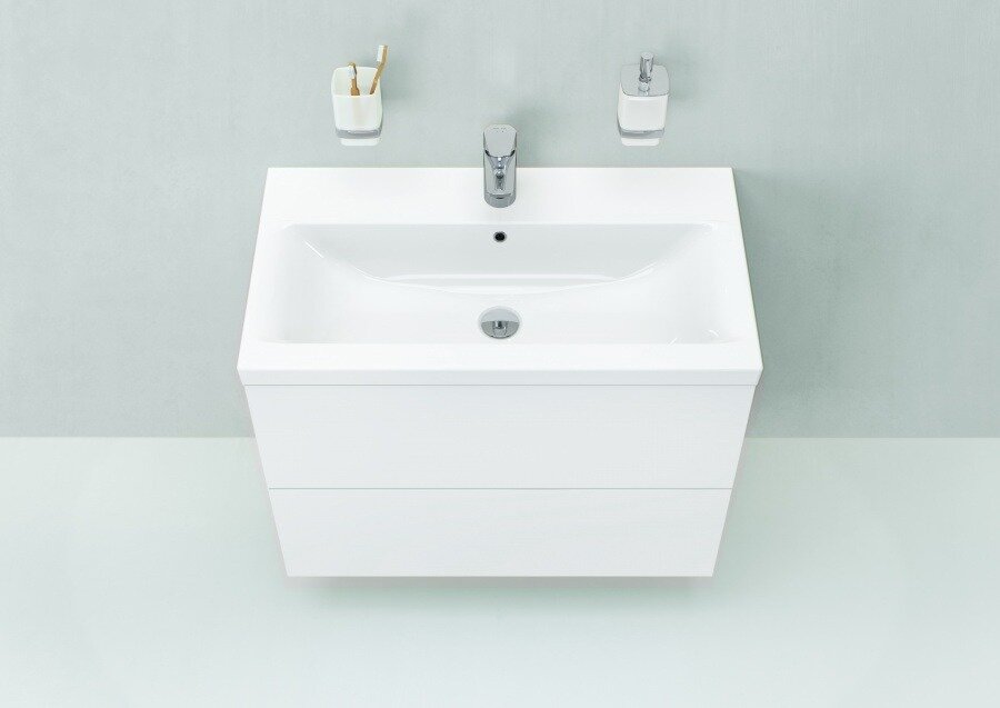 Тумба с раковиной в ванную AM.PM подвесная, 75 см, 2 ящика push-to-open, белый глянец, раковина с тумбой для ванной, эмалевое покрытие, Германия