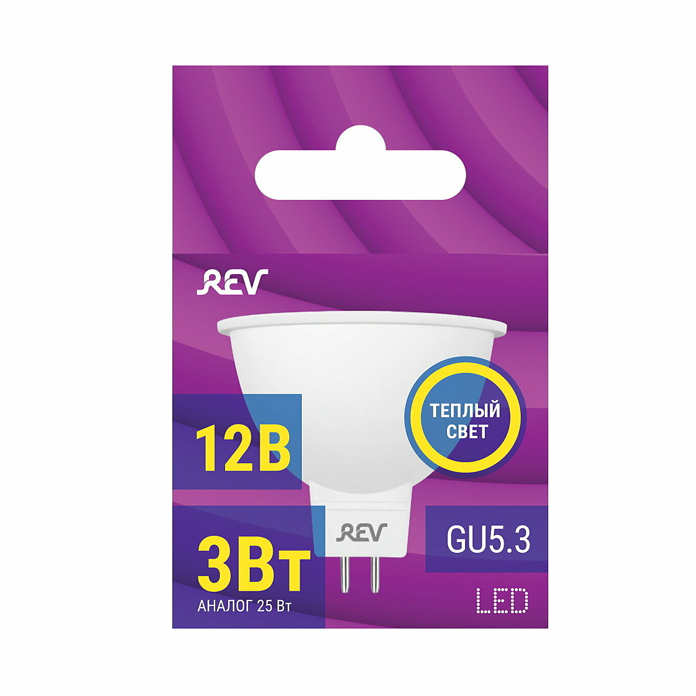 Лампа светодиодная REV MR16 3 Вт GU5.3 3000K 12V 32369 3