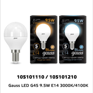 Ниже Вы можете прочитать отзывы на Gauss Лампа LED Шар E14 9.5W 890lm 3000K SQ105101110, ознакомится с подробными характеристиками, посмотреть интересные обзоры и фотографии на Gauss Лампа LED Шар E14 9.5W 890lm 3000K SQ105101110.