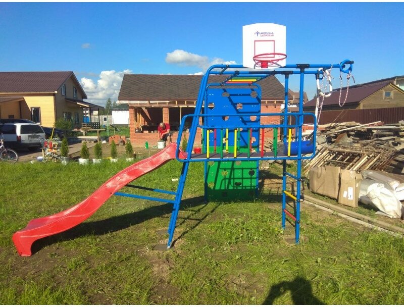 | Дополнительная информация | допустимая нагрузка на навесное оборудование: 80 кг; количество горок: 1; количество качелей: 1 |