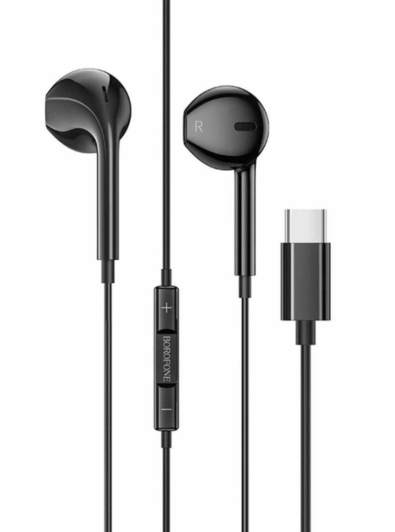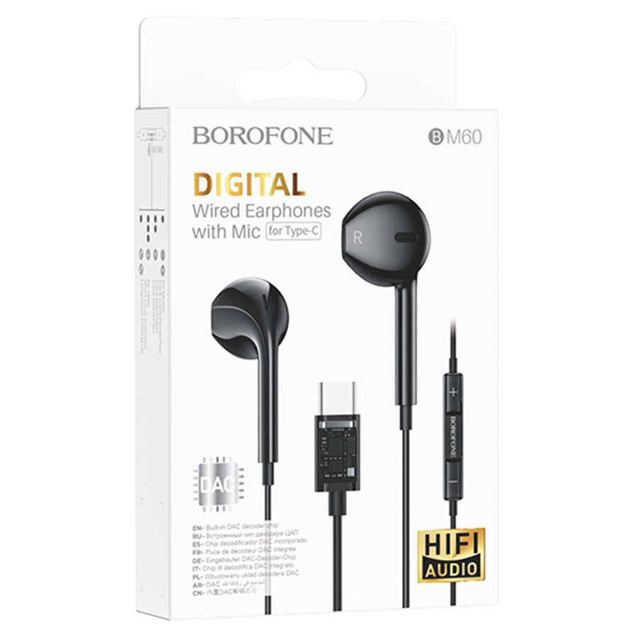 Наушники внутриканальные Borofone BM60, Original series, микрофон, кнопка ответа, регулятор громкости, кабель Type-C, цвет: черный