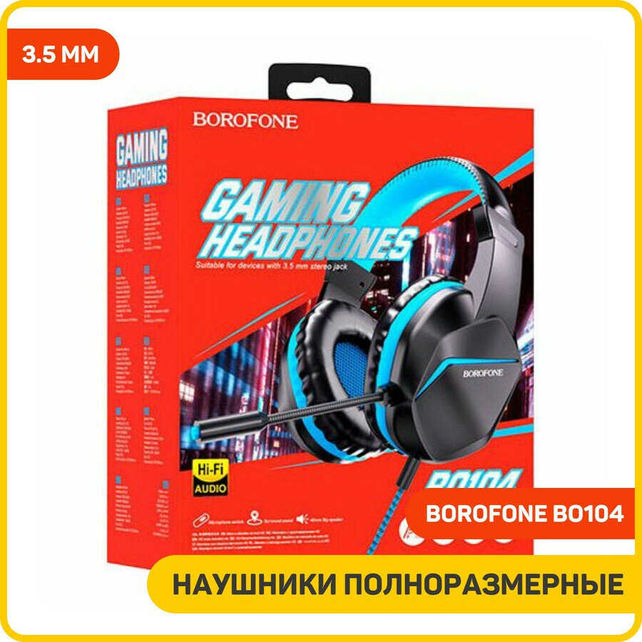 Купить Компьютерная гарнитура BOROFONE BO104 Phantom синий, Наушники игровые для компьютера, ноутбука