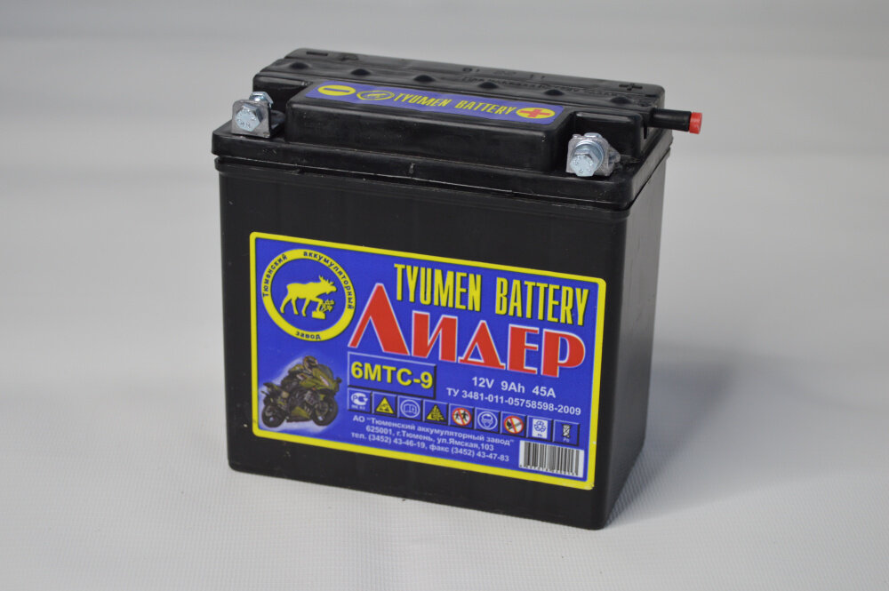 Аккумулятор мото Tyumen Battery Лидер 9 а/ч 45А под болт Обратная полярность