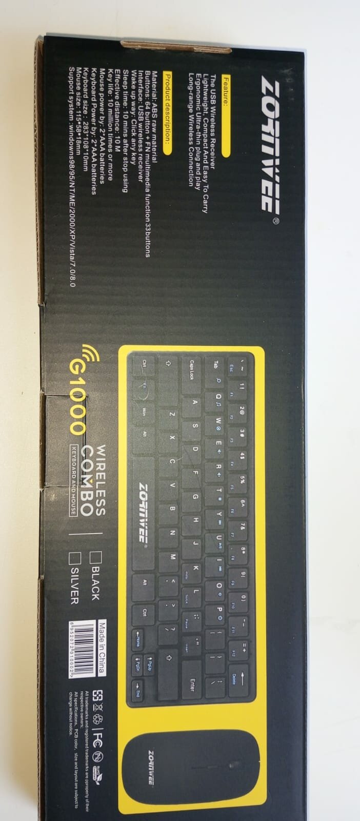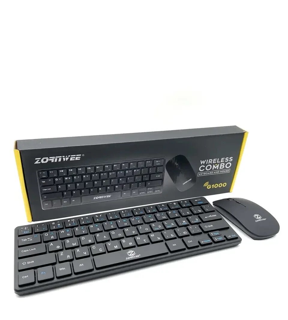Комплект беспроводной клавиатуры и мыши ZORNWEE G-1000, black, английская/русская интересное: