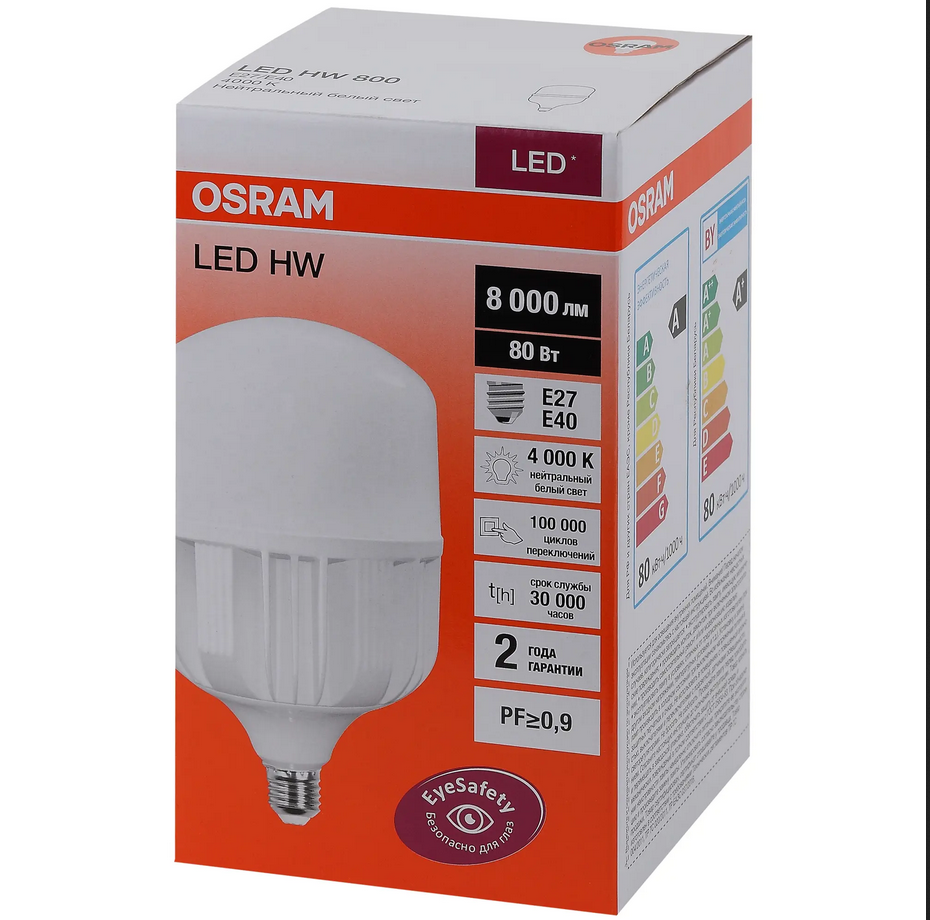Светодиодная лампа OSRAM LED HW 80W/840 230V E27/E40 8000lm 8X1 +адаптор