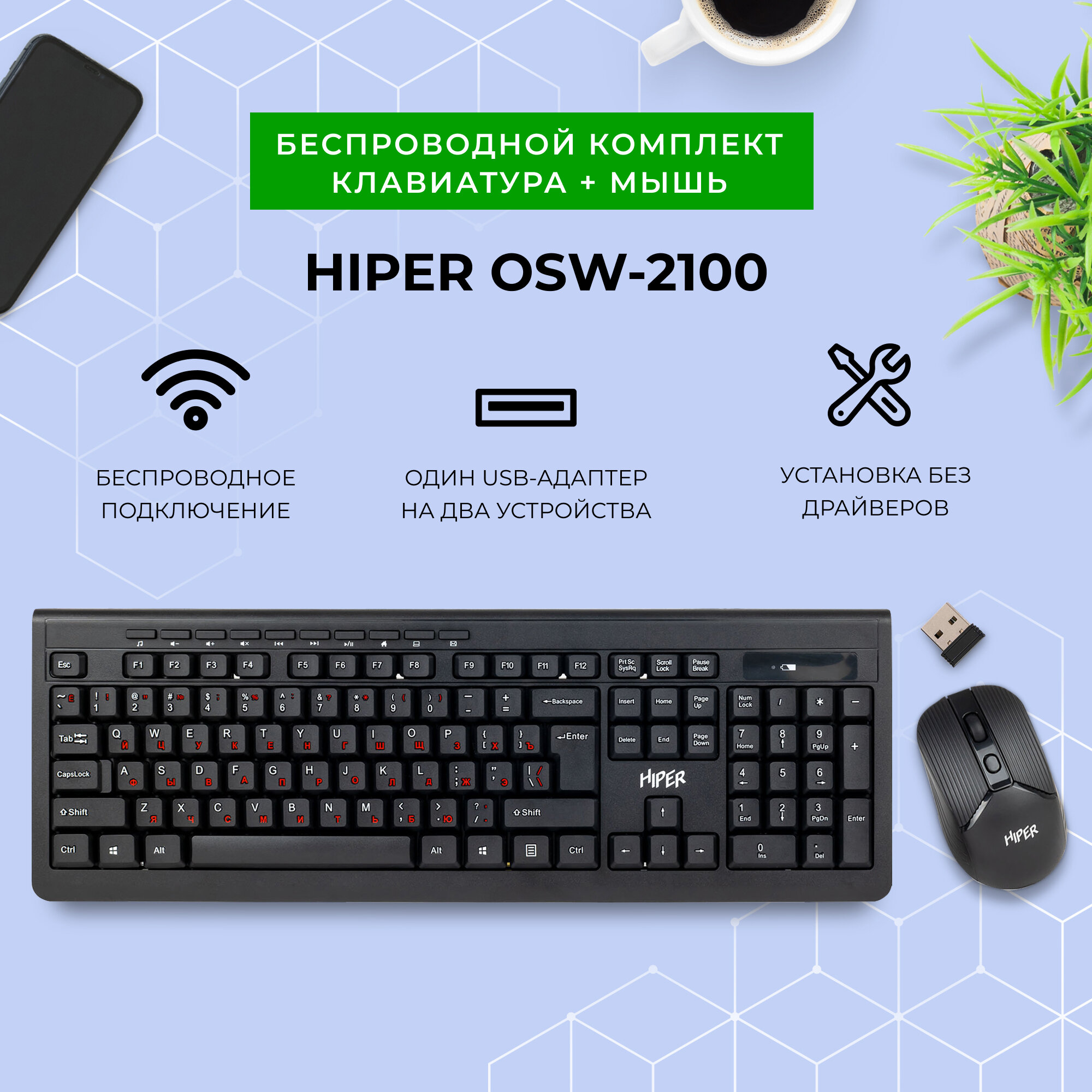 Купить Набор клавиатура+мышь Hiper OSW-2100 черный, (114кн, 1600DPi), беспроводной