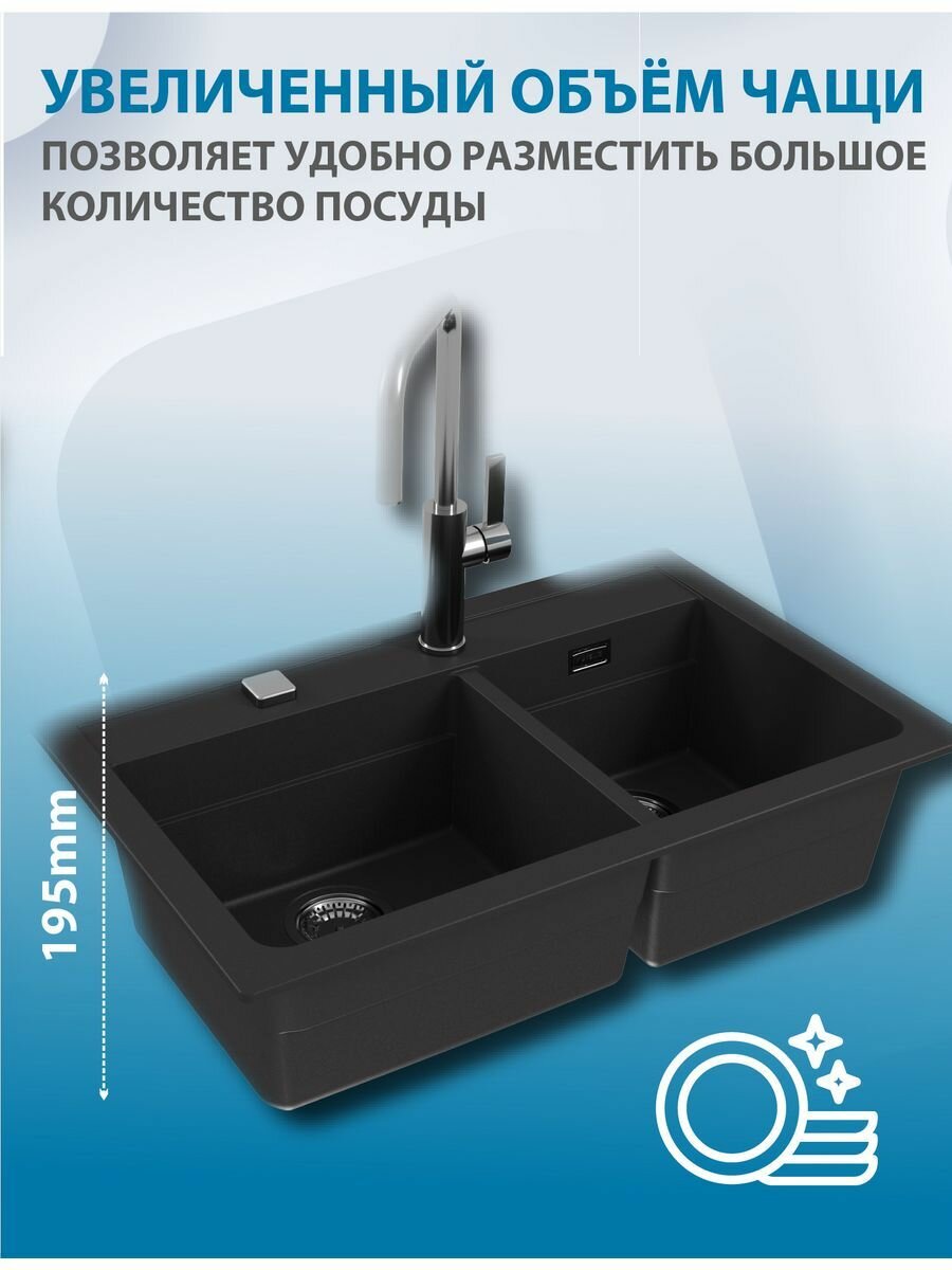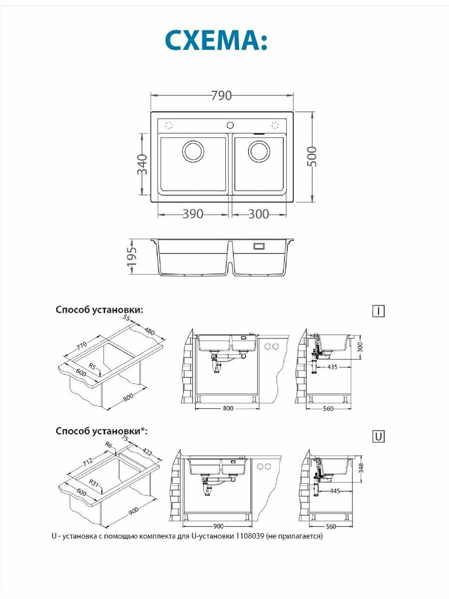 | Дополнительная информация | размер дополнительной чаши 30x34x14 см; монтаж врезной I (ширина шкафа 80 см) или под столешницу U (ширина шкафа 90 см); перелив в чаше; в комплекте слив, перелив, сифон, клапан-автомат, корзинчатый вентиль |