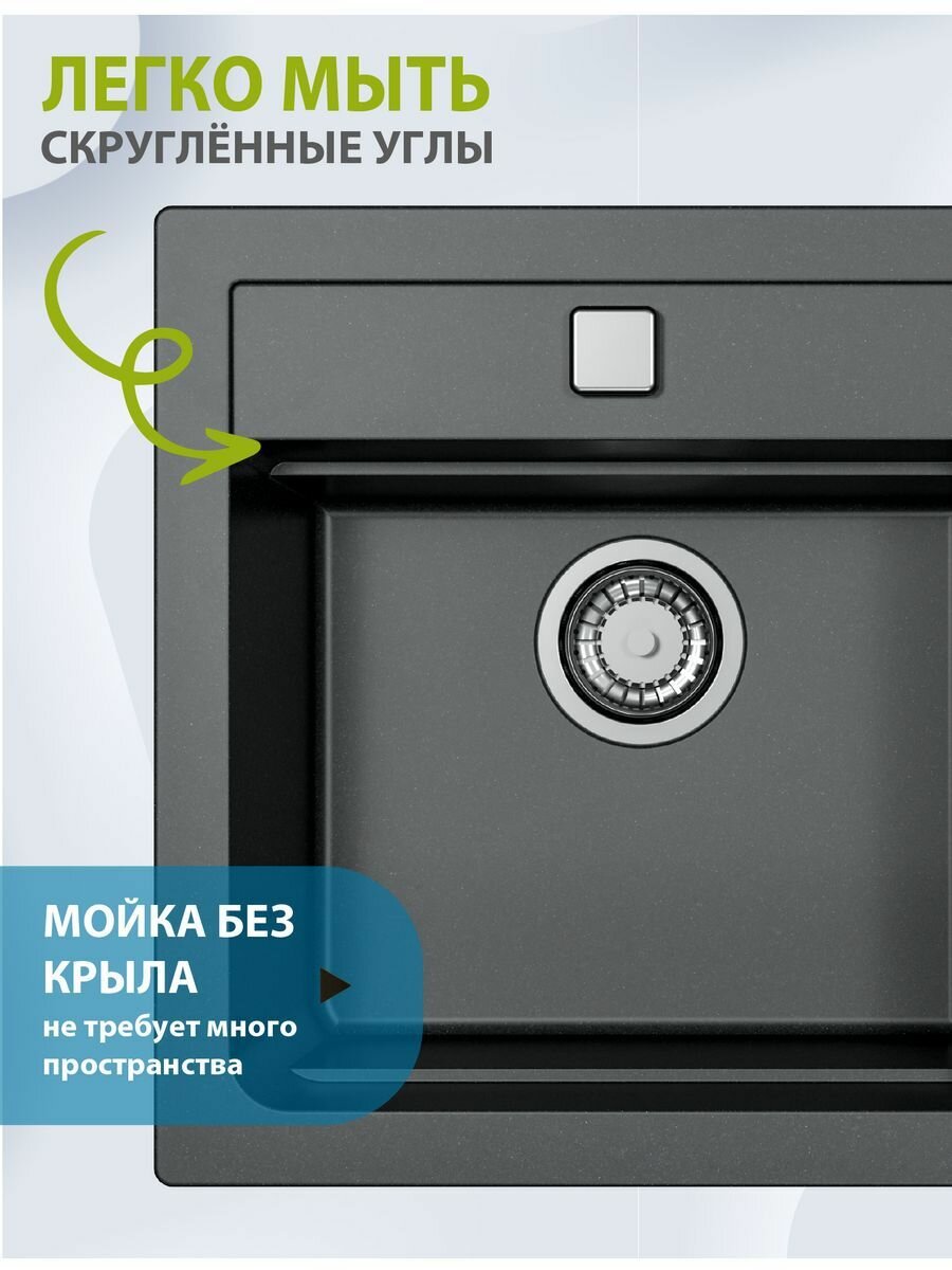 Мойка ALVEUS GRANITAL ATROX 50 CARBON - G91 в комплекте с сифоном 1132822,