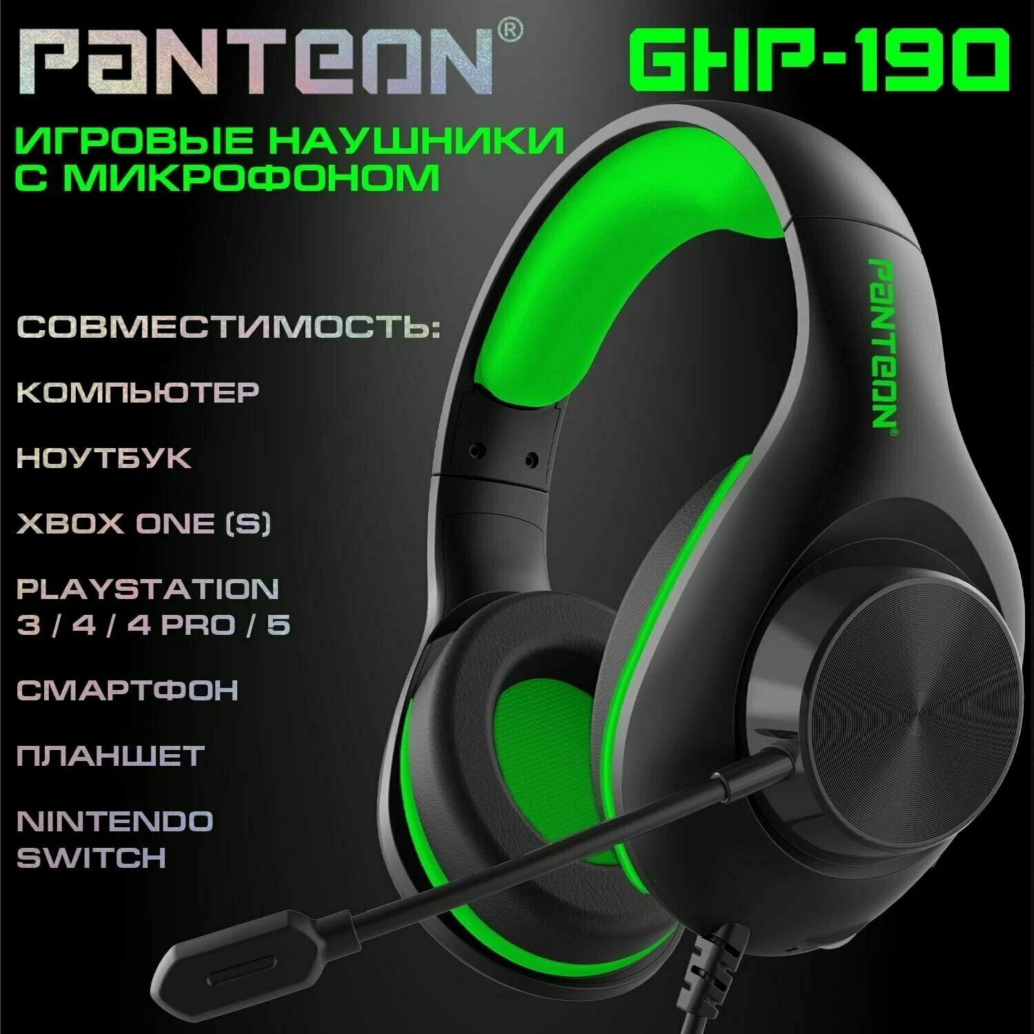 Игровые наушники С микрофоном PANTEON GHP-190 зеленый интересное:
