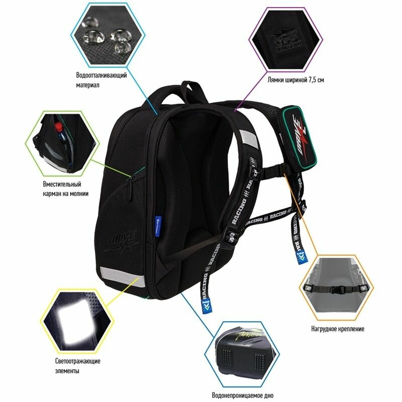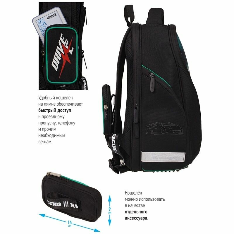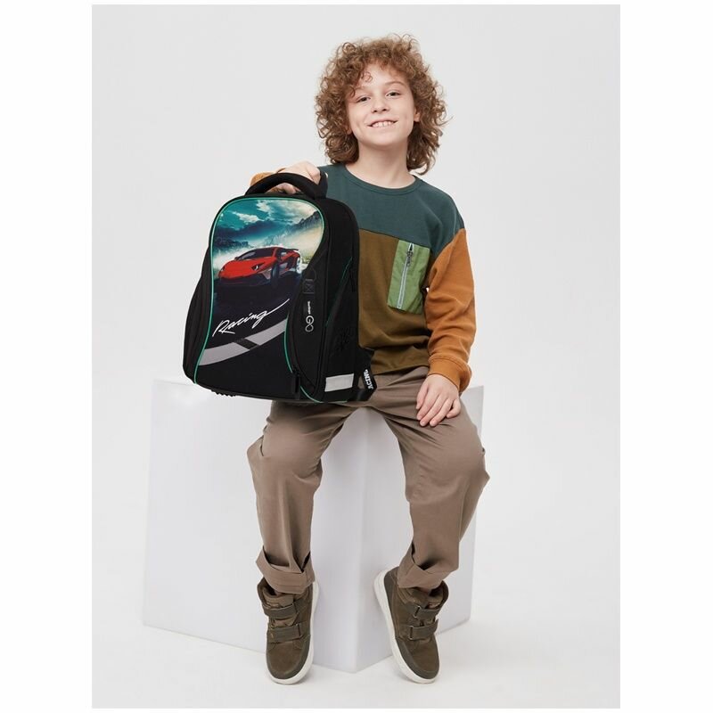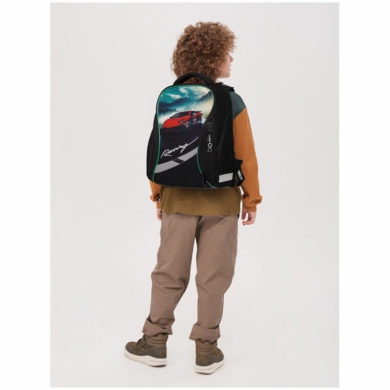 Berlingo Ранец Nova "Racer", черный/зеленый/красный