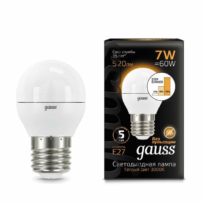 Лампа LED G 6,5Вт E27 220V 2700K "Gauss" 105102107