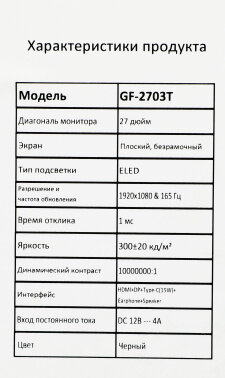 Монитор Pinebro 27" GF-2703T черный IPS LED 5ms 16:9 HDMI M/M матовая 250cd 178гр/178гр 1920x1080 165Hz DP FHD USB 4кг интересное: