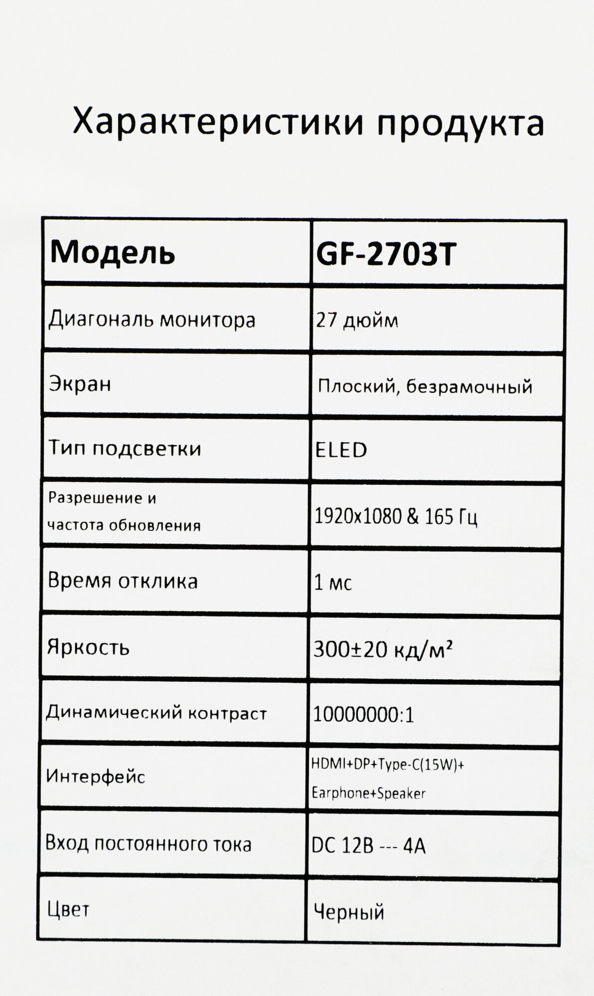 Купить Монитор Pinebro 27" GF-2703T черный IPS LED 5ms 16:9 HDMI M/M матовая 250cd 178гр/178гр 1920x1080 165Hz DP FHD USB 4кг