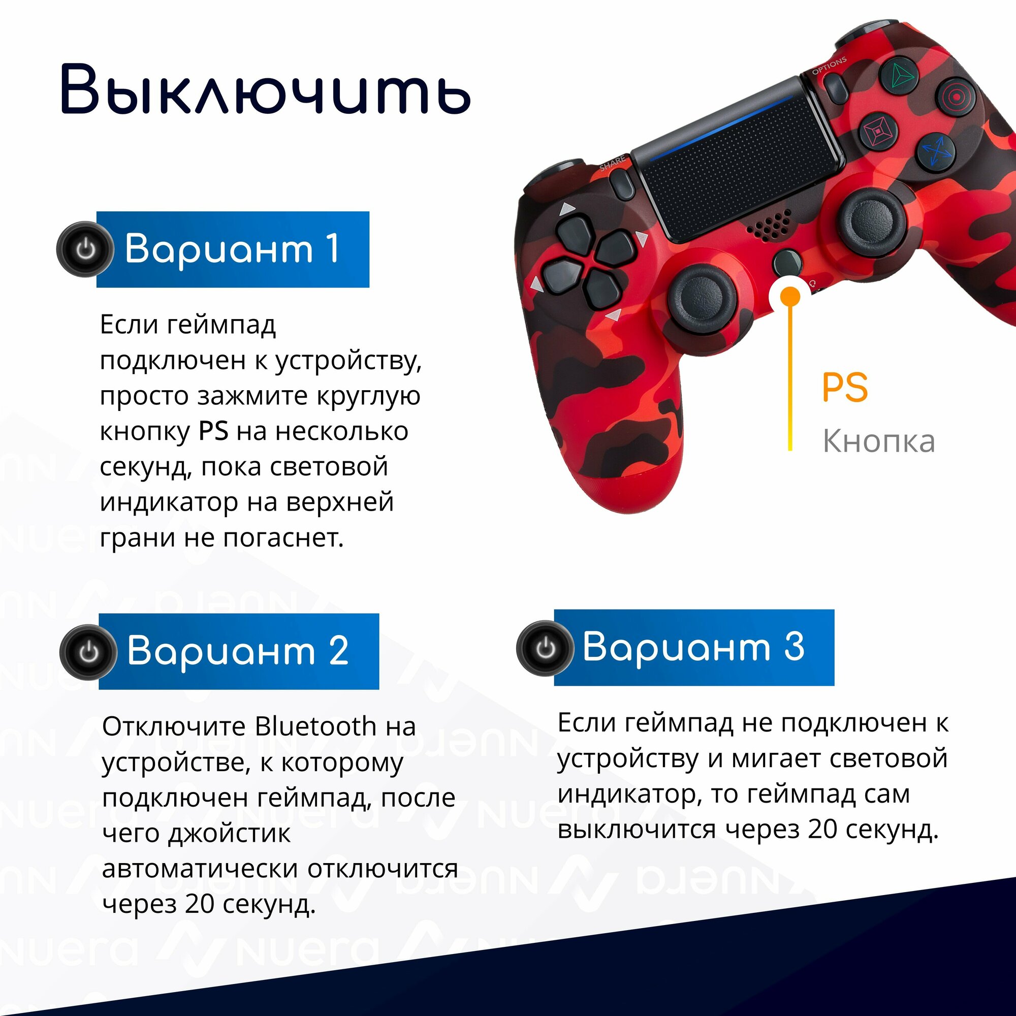 Original Drop / Игровой геймпад, беспроводной джойстик для PS4, ПК, телефона, bluetooth красный камуфляж