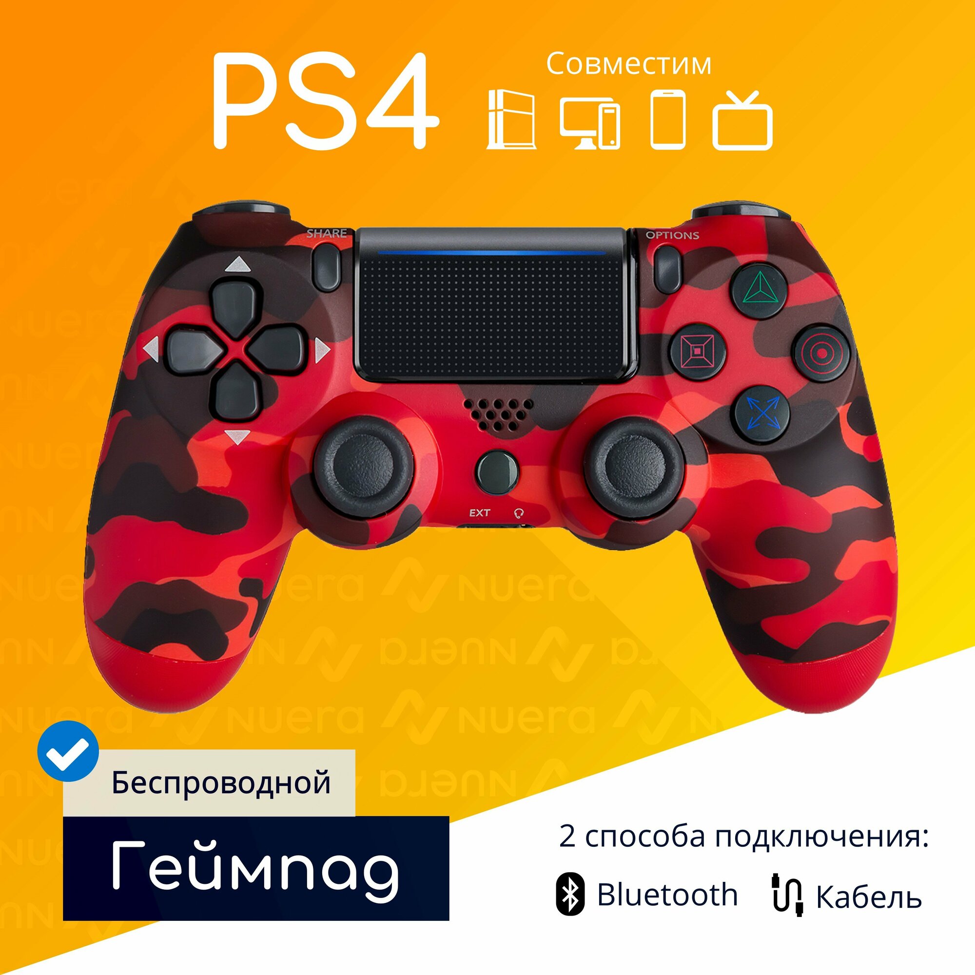 Купить Беспроводной геймпад для PS4 с зарядным кабелем, красный камуфляж / Bluetooth / джойстик для PlayStation 4, iPhone, iPad, Android, ПК / Original Drop