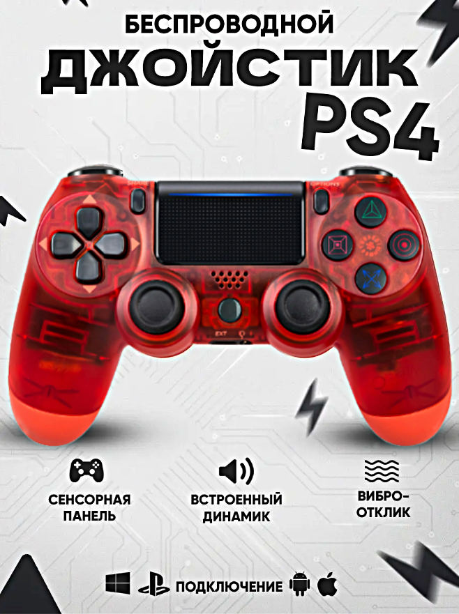 Геймпад для PlayStation 4, Джойстик совместимый с PS4, PC и Mac, устройства Apple, устройства Android, Прозрачный Красный интересное: