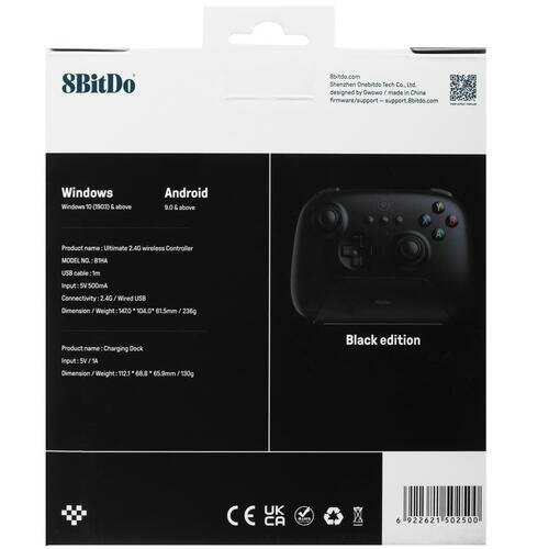 | Подробная комплектация | Беспроводной игровой контроллер 8BitDo Ultimate Bluetooth Controller, адаптер 2.4 ГГц, документация, зарядная док-станция, кабель USB. |