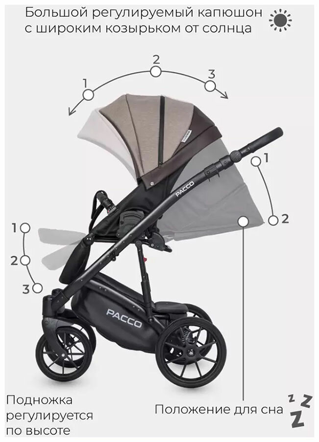 Коляска PACCO (3 в 1) (RIKO BASIC) 06 Latte (бежевый-коричневый)