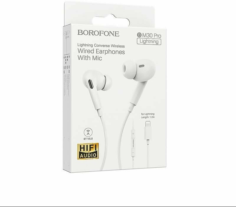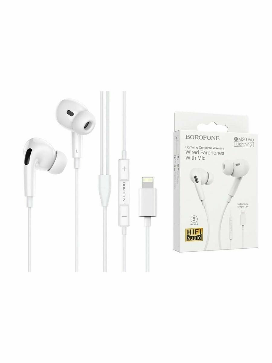 Наушники Borofone BM30 Pro, вакуумные, микрофон, Lightning, кабель 1.2 м, белые