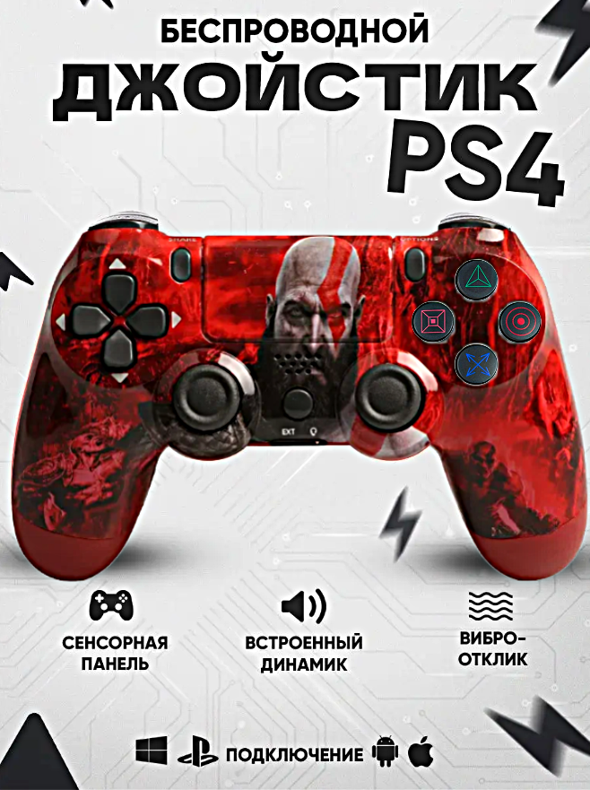 СохранитьГеймпад для PlayStation 4, Джойстик совместимый с PS4, PC и Mac, устройства Apple, устройства Android, Красный God Of War интересное: