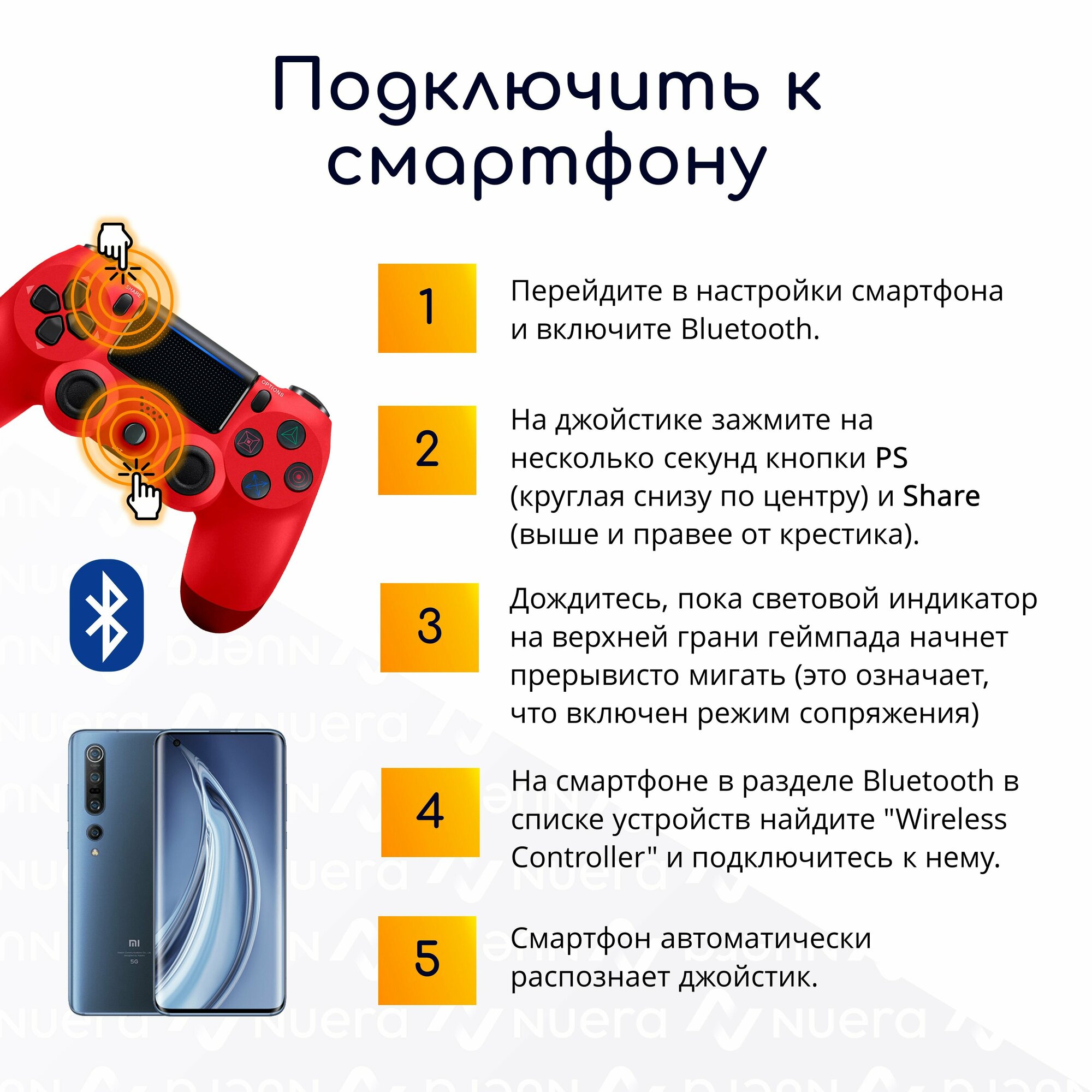 Original Drop / Игровой геймпад, беспроводной джойстик для PS4, ПК, телефона, bluetooth, красный