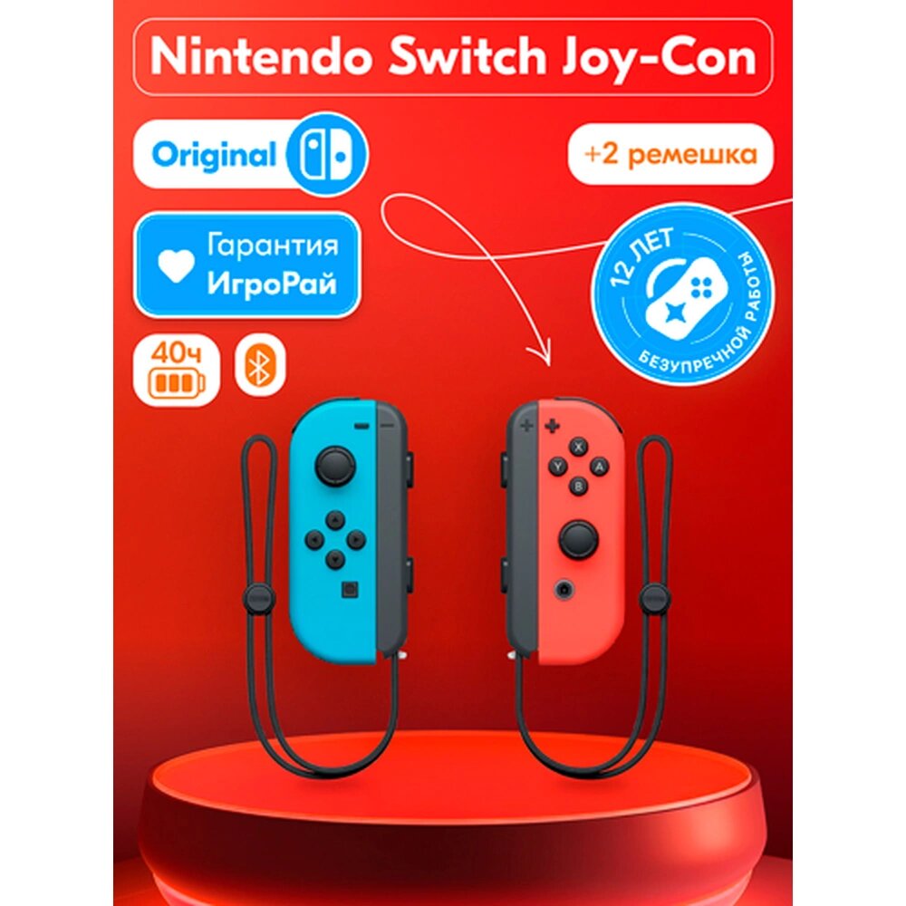 Геймпад для Switch Nintendo 2 контроллера Joy-Con неон-красный/синий