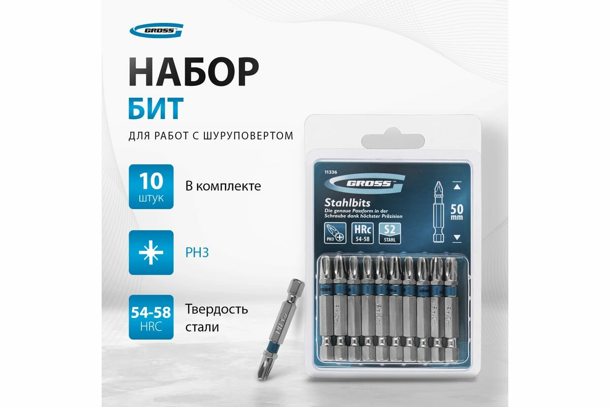 Купить GROSS Набор бит РН3x50, сталь S2, 10шт // 11336