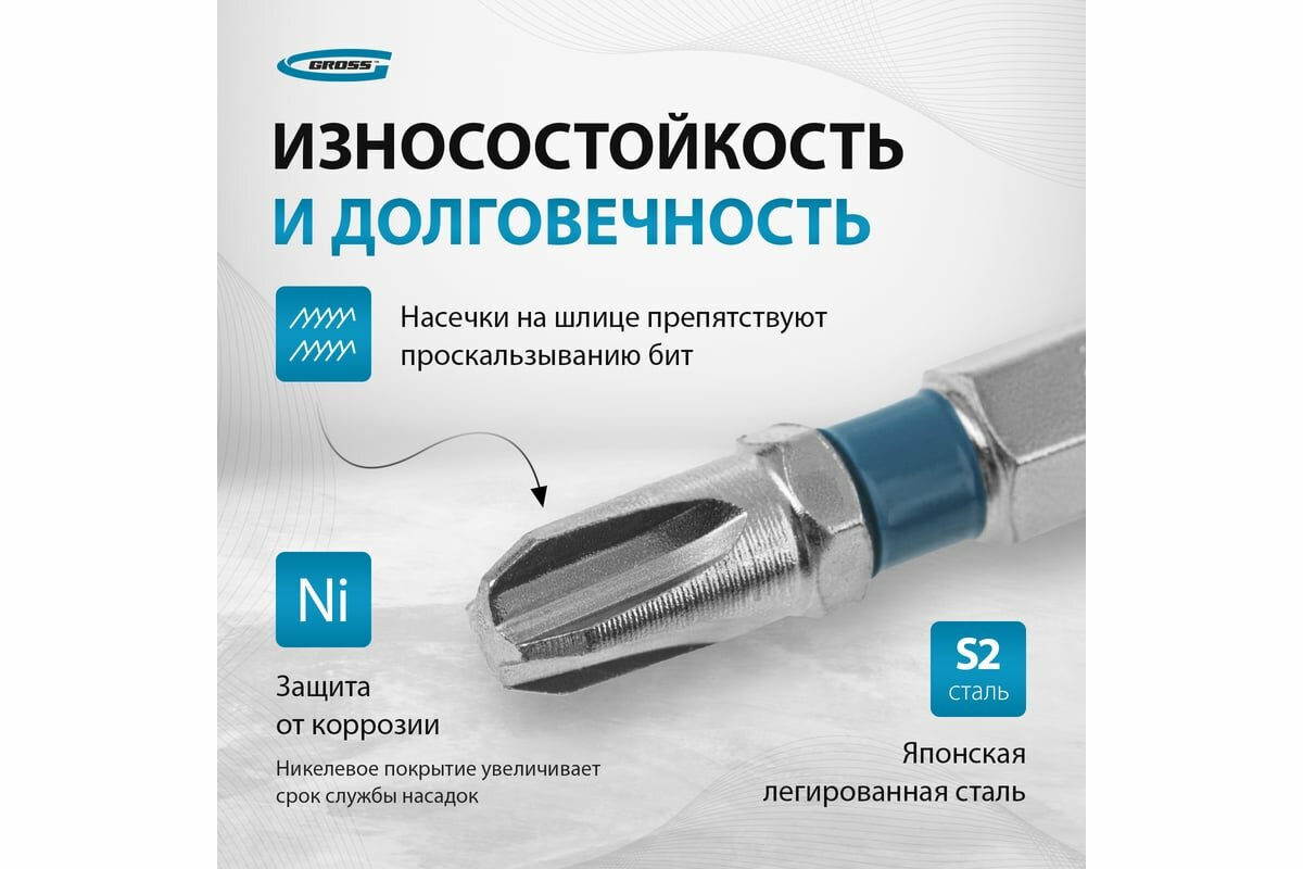 GROSS Набор бит РН3x50, сталь S2, 10шт // 11336 интересное: