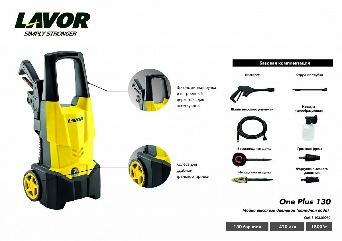 СохранитьАппарат высокого давления Lavor One Plus 130 8.103.0005C интересное: