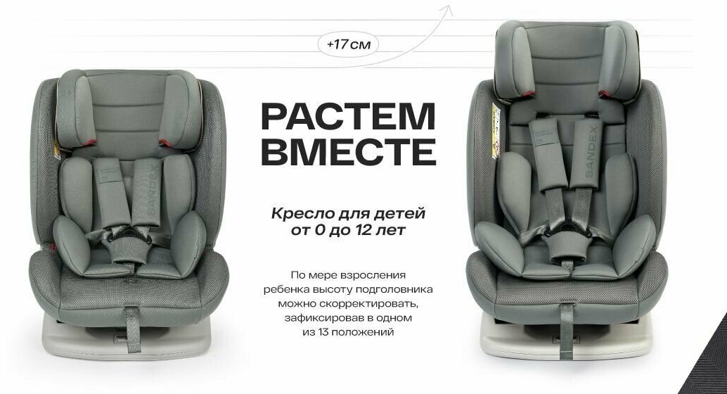Автокресло Happy Baby детское Sandex, 0-12 лет, группа 0/1/2/3, (0-36 кг), светло-серое