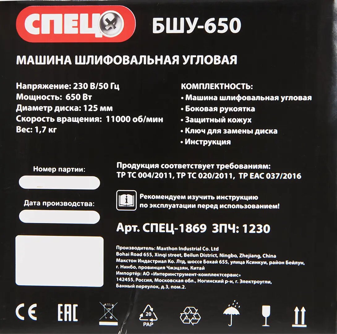 УШМ сетевая Спец БШУ-650, 650 Вт, 125 мм интересное: