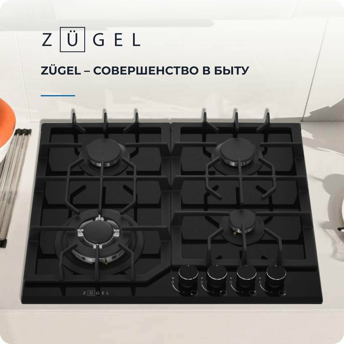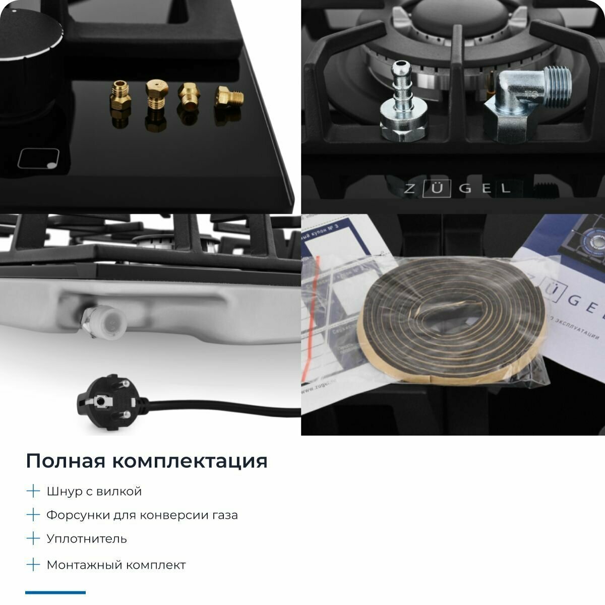 Встраиваемая газовая варочная панель ZUGEL ZGH601B черная
