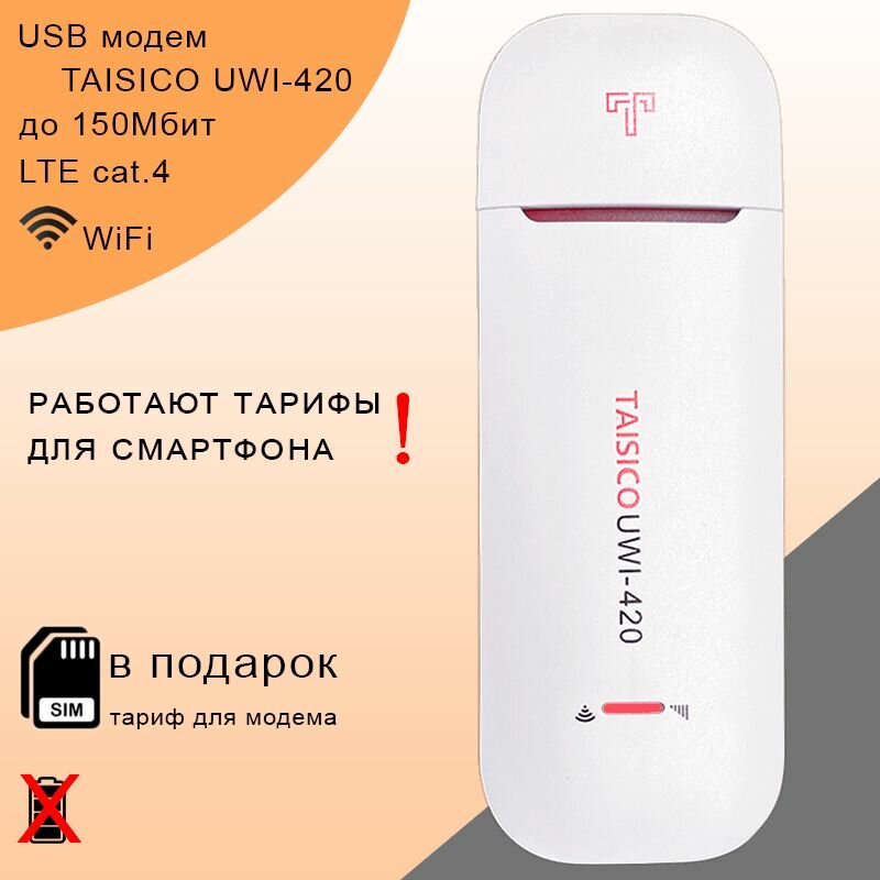 Беспроводной 3G 4G LTE модем TAISICO UWI-420 I WiFi 2.4ГГц I до 150Мбит + сим карта в подарок