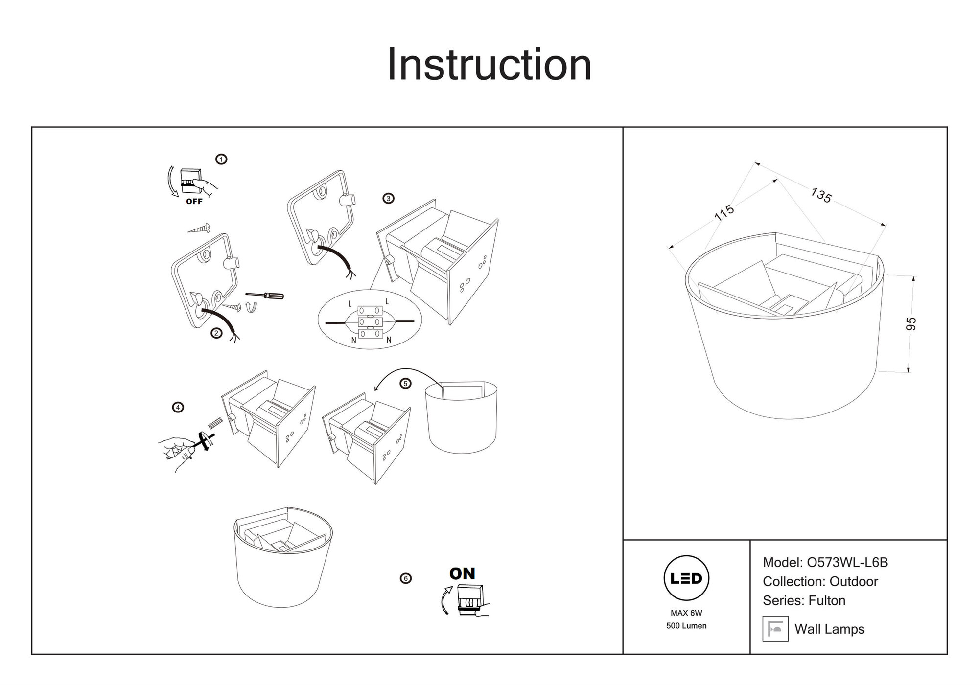 Настенный светильник (бра) Fulton Outdoor O573WL-L6B
