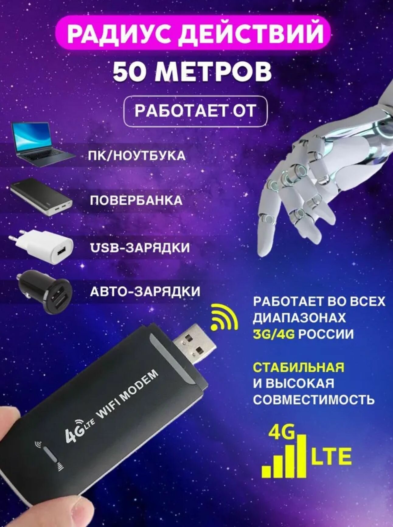 Купить Модем Wi-Fi USB RX 150 Мб/с, LTE 2G/3G/4G универсальный, черный