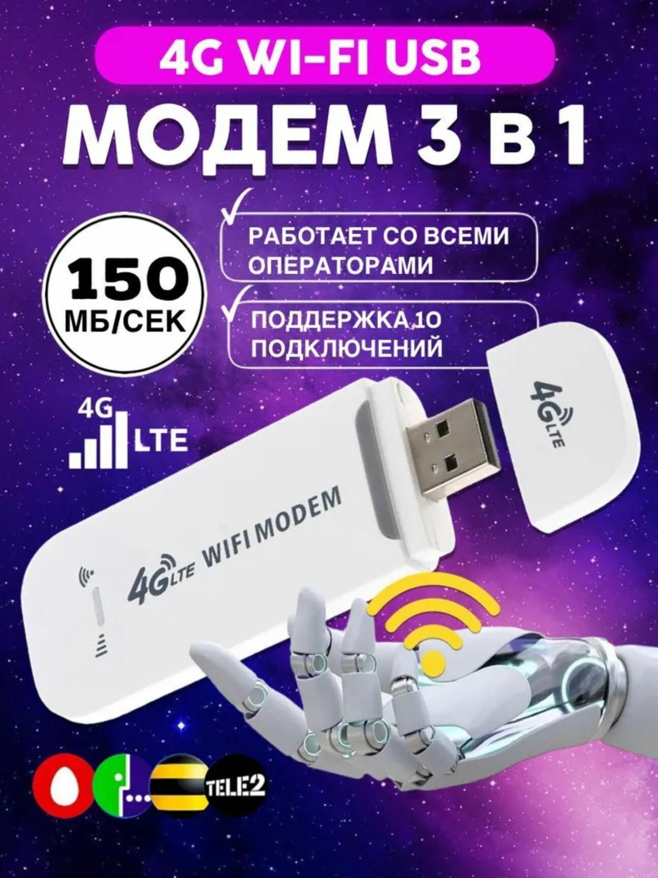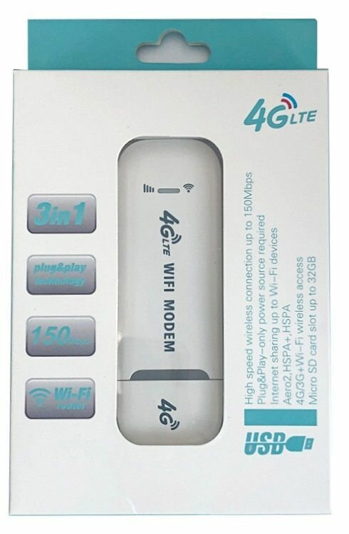 Модем Wi-Fi USB RX 150 Мб/с, LTE 2G/3G/4G универсальный, белый интересное: