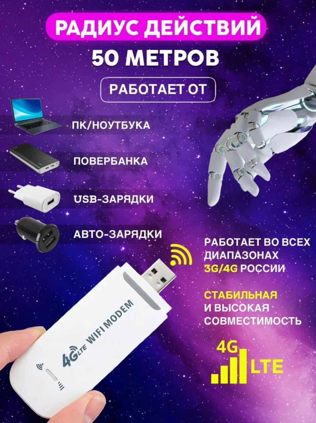 Купить Модем Wi-Fi USB RX 150 Мб/с, LTE 2G/3G/4G универсальный, белый
