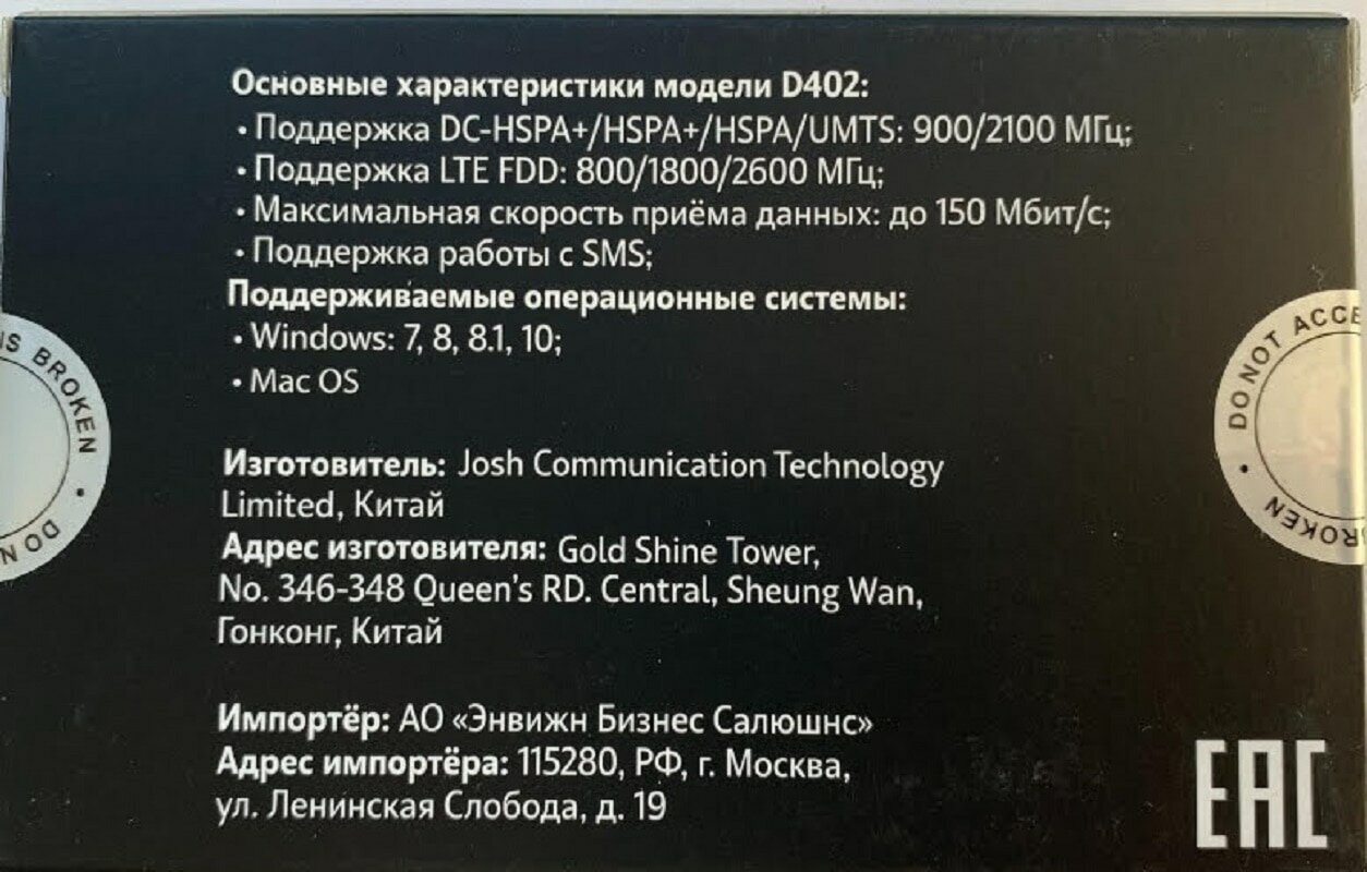 Модем D402 3G/4G, черный (для всех операторов) интересное: