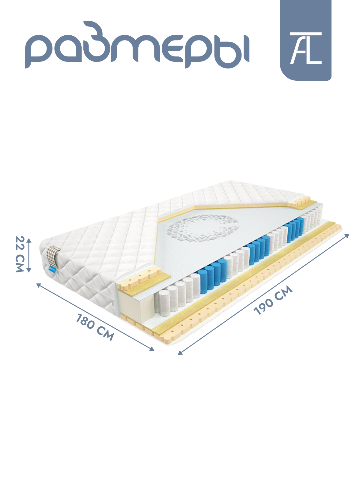 | Дополнительная информация | состав: съемный чехол «white plaid», натуральный латекс h - 3 см, латексированный сизаль h - 1 см, термовойлок (опция - BioCrystal 50 гр.), SilverSpringPocket 7 zone 580 пр/сп.м h - 14 см, термовойлок, латексированный сизаль h - 1 см, натуральный латекс h - 3 см, укрепляющий короб, внутренний чехол |