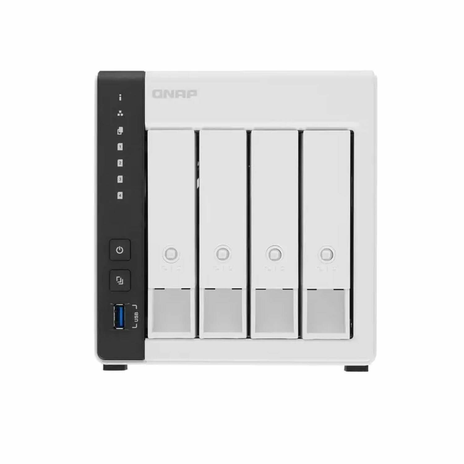 Сетевое хранилище без дисков/ channel QNAP D4 NAS 4 HDD trays.ARM 4-core Cortex-A55 2.0GHz, RAM 4 GB (max), 1x2.5GbE, 1x1GbE, 2xUSB 2.0 port,1xUSB 3.2