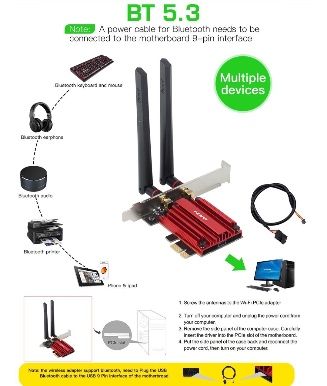 Двухдиапазонный беспроводной Wi-Fi-адаптер Fenvi PCE-AXE3000 Wi-Fi 6E AX210 Bluetooth 5.3 5374 Mb/s с 2 4 Г 5 ГГц 6 Г Wi-Fi 802 11 AX AC интересное: