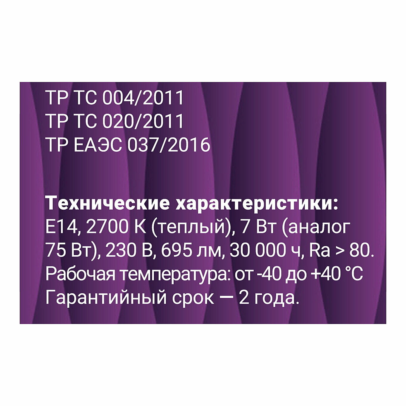 | Тип цоколя | E14 |